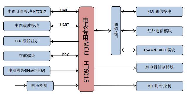 3、MCU芯片可替換為更大Flash和RAM的HT6025芯片,與HT6015完全兼容,將原方案升級至支持國網(wǎng)698協(xié)議的電表。此外還可與HT6215完全兼容,省略一顆外部32.768K晶振和RTC校驗步驟。